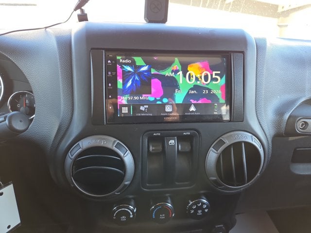 Located at Baglier Mazda... Super Clean Billet Silver Jeep Wrangler Willys Wheeler 4x4... Rear Camera... Touch Screen Display... 3-Peice Hard Top!!